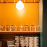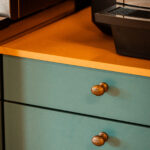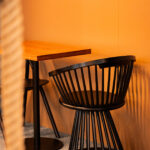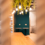 Deze kantoorinrichting toont hoe circulariteit en identiteit samen een uniek interieur kunnen vormen. Bestaande bureaubladen werden zorgvuldig verzaagd, geschuurd en opnieuw vernist, waarna ze een tweede leven kregen als wandbekleding en compartimenteringswanden. Zo werd niet alleen duurzaam gewerkt, maar kreeg het interieur ook een warme en authentieke uitstraling.