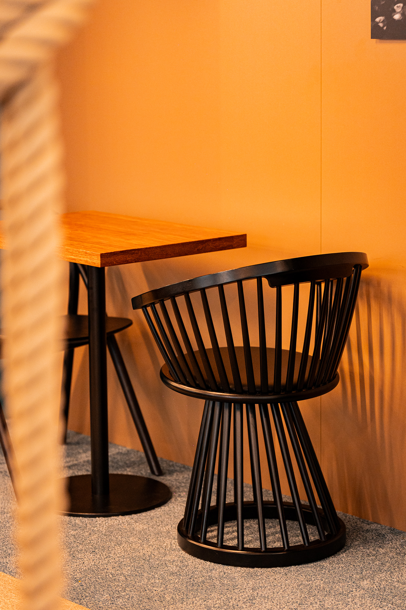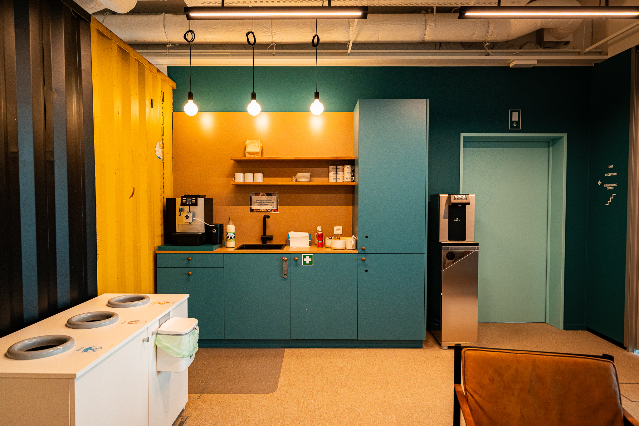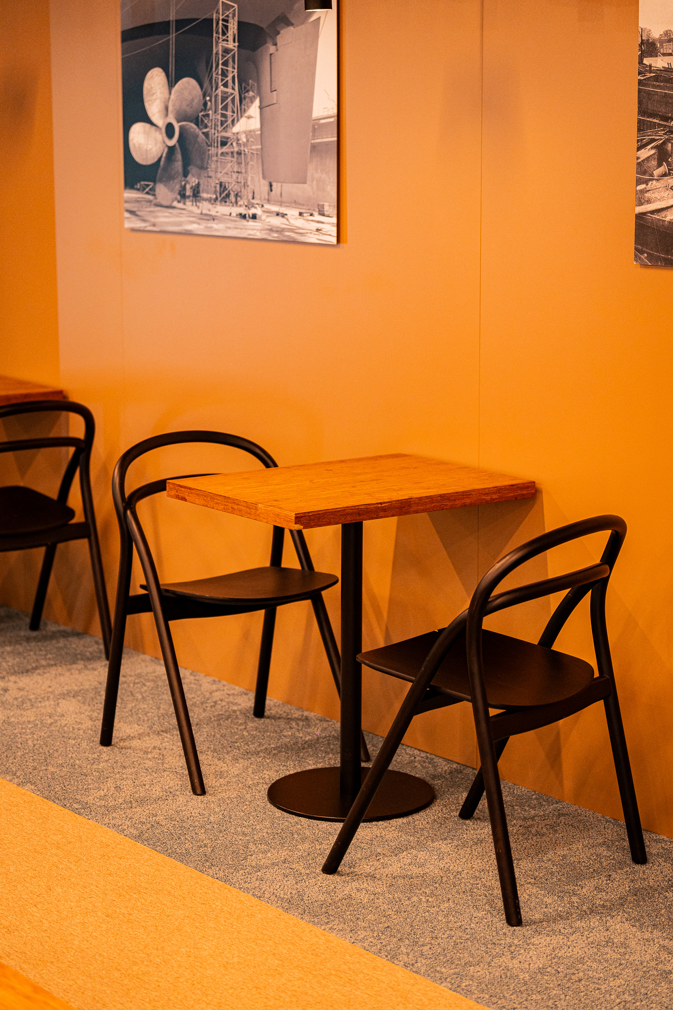 Aangezien de klant een Belgische rederij is, werden duidelijke maritieme accenten geïntegreerd in het ontwerp. Opengeslepen containers werden verwerkt tot decoratieve elementen, waarbij containerpanelen en containerdeuren een prominente plaats kregen in het interieur. Scheepstouwen en andere subtiele verwijzingen naar de scheepvaart versterken het speelse karakter van de ruimte. Het resultaat is een dynamische co-workingspace waar mensen samenkomen, samenwerken en ook kunnen ontspannen.