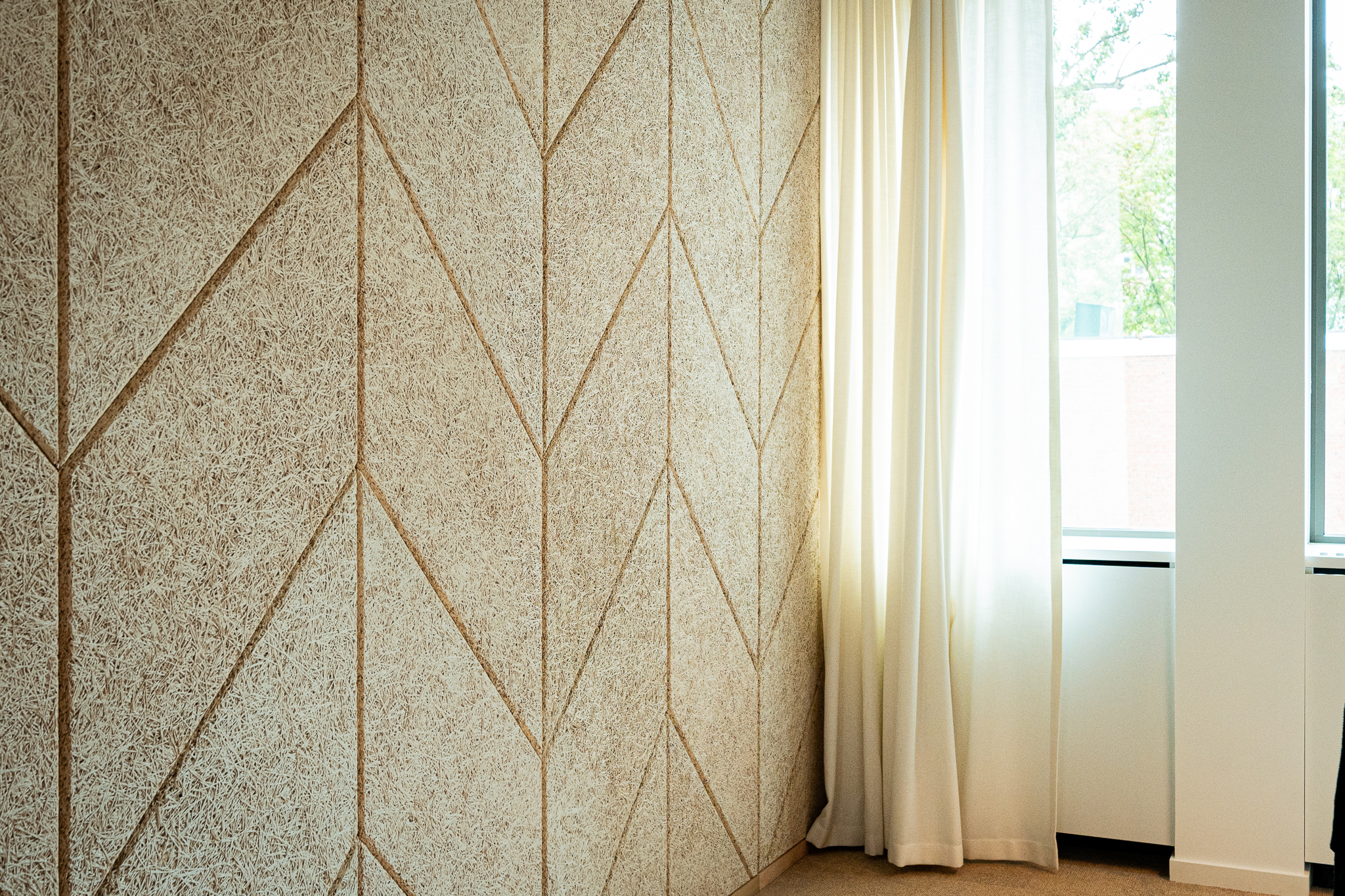 - Akoestiek - Aangezien akoestiek zo'n belangrijke rol speelde, werd hier volop op ingezet. De geplaatste TARKETT tapijttegels hebben een extra akoestische backing en de wandpanelen van BAUX maakten het akoestische plaatje compleet.