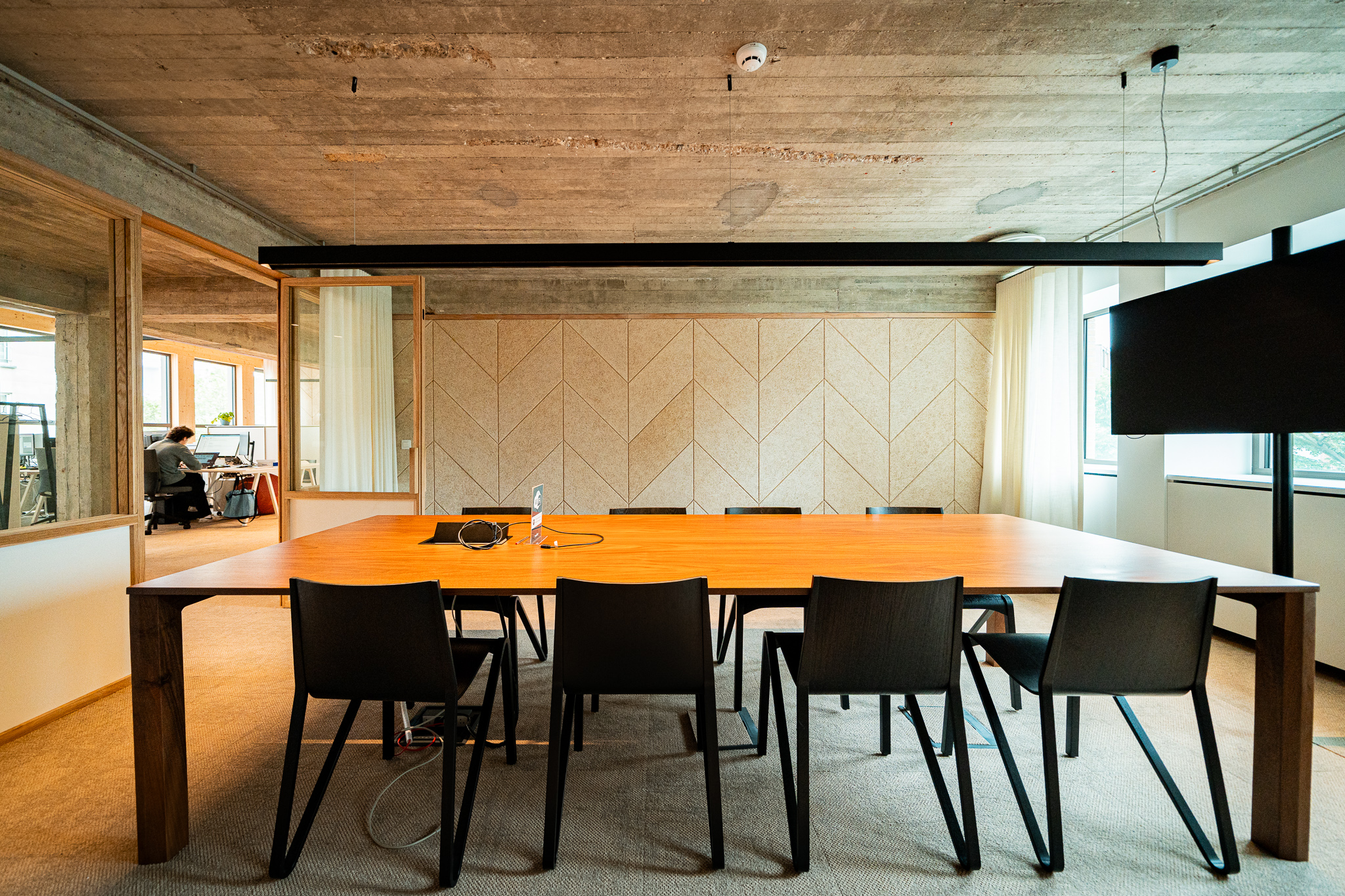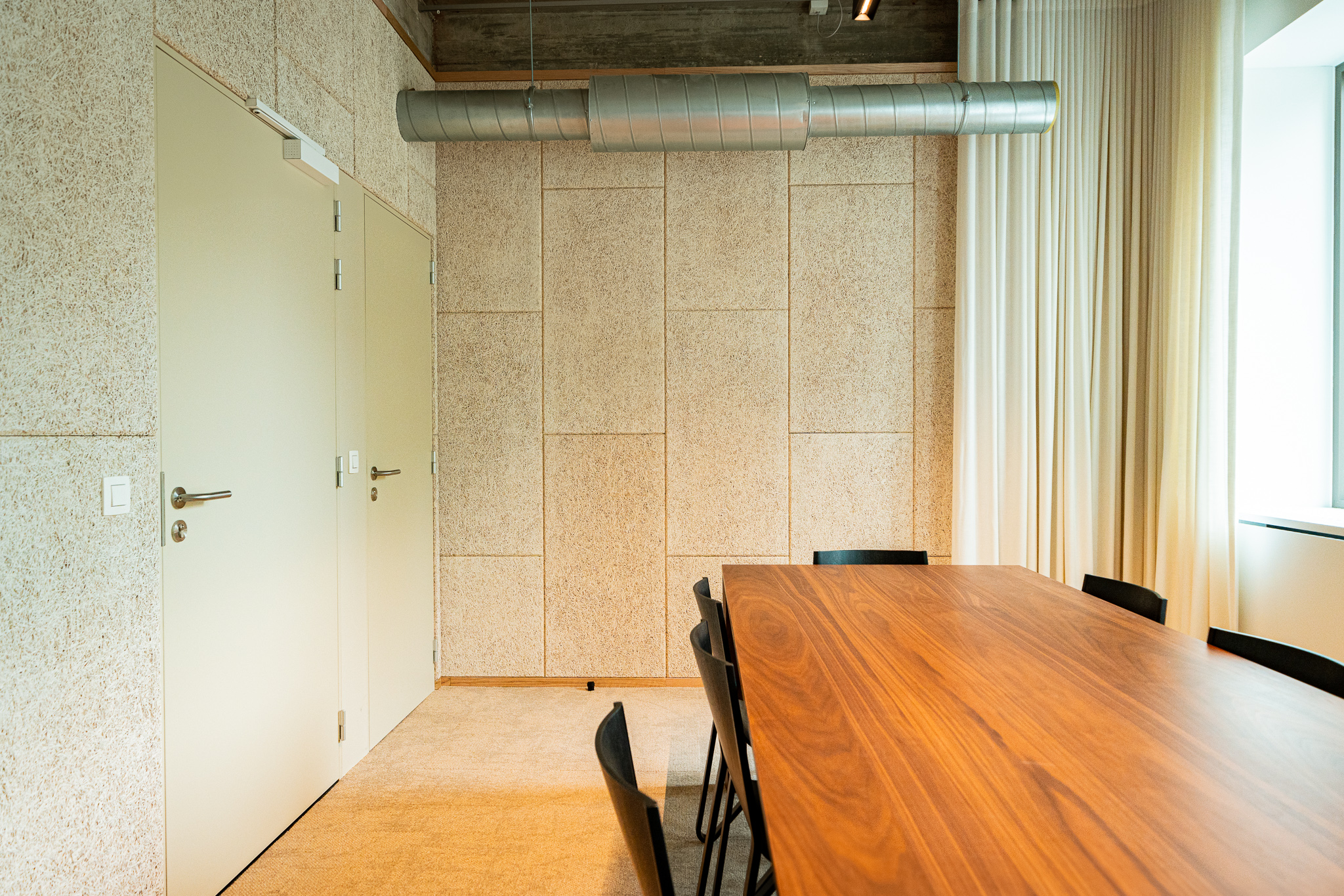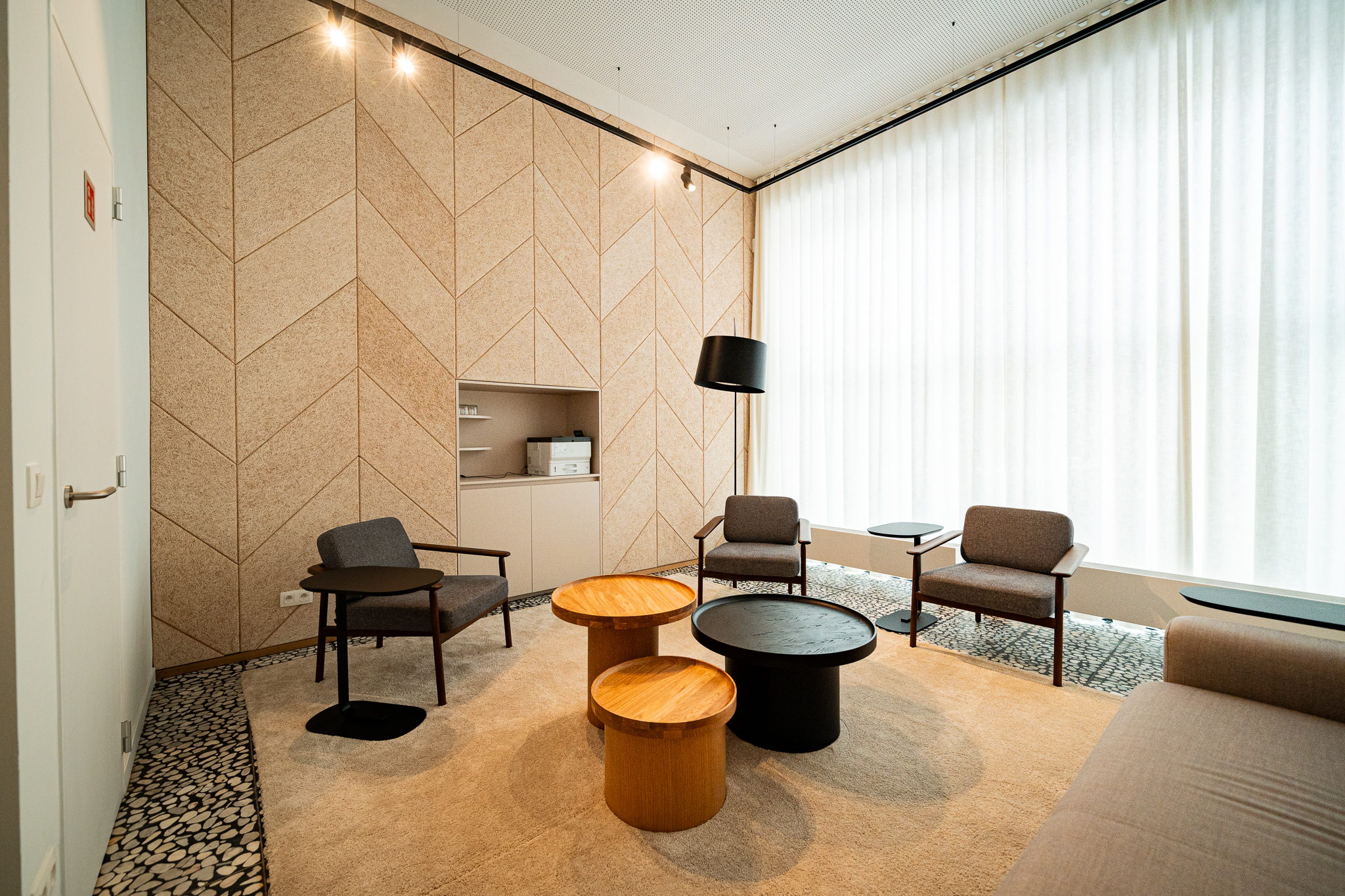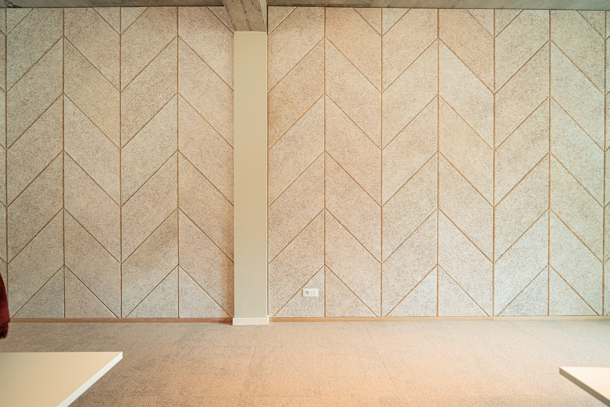 - Akoestiek - Aangezien akoestiek zo'n belangrijke rol speelde, werd hier volop op ingezet. De geplaatste TARKETT tapijttegels hebben een extra akoestische backing en de wandpanelen van BAUX maakten het akoestische plaatje compleet.