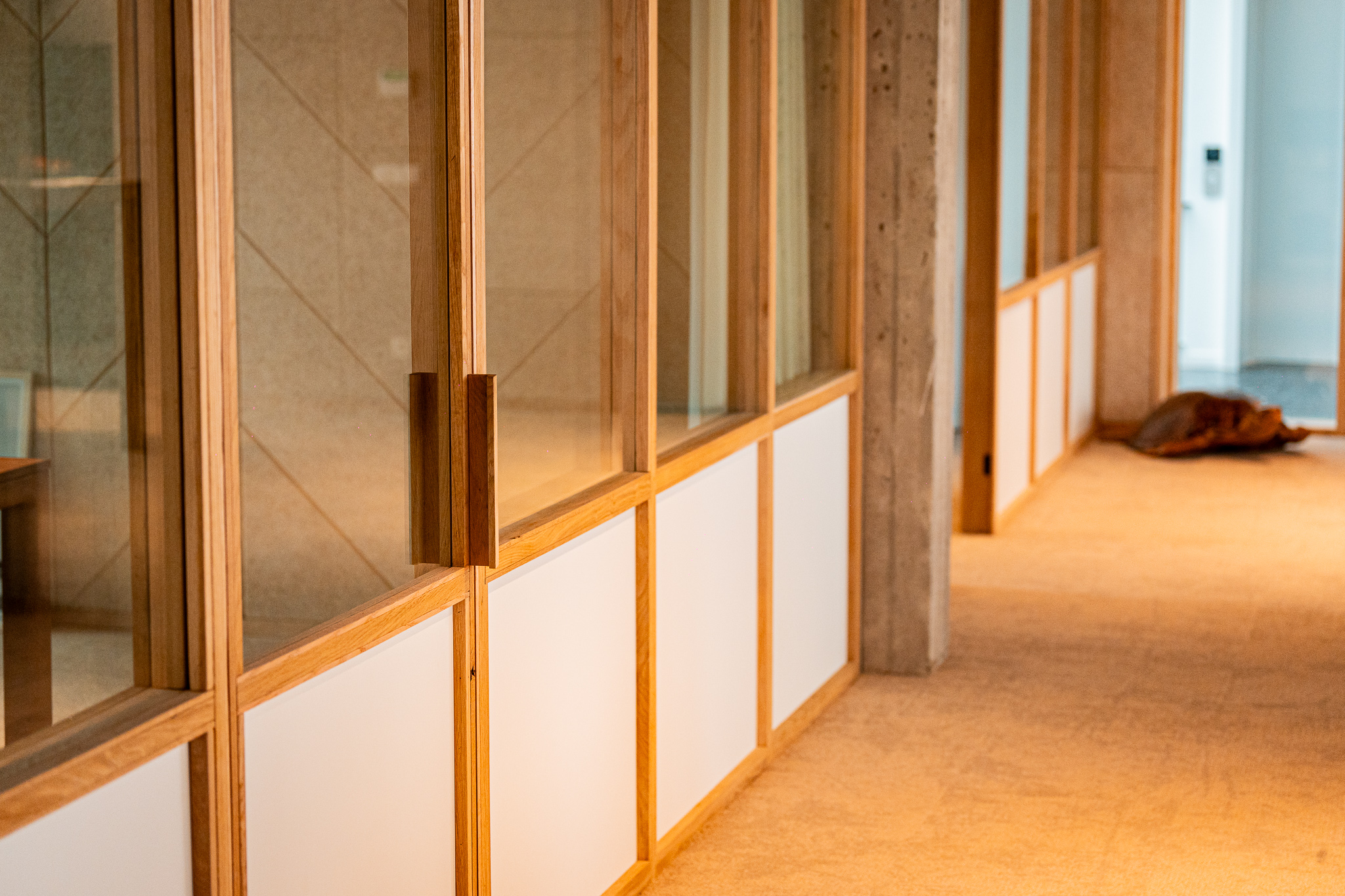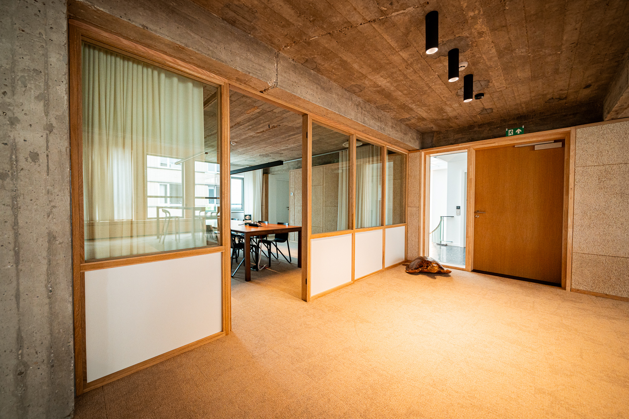 - Kantoorruimte op maat - voor het executive office hebben we een maatwerk kantoorruimte met retrolook gecreërd. Ook hier was geluidsisolatie van groot belang en werd hier extra aandacht aan besteed